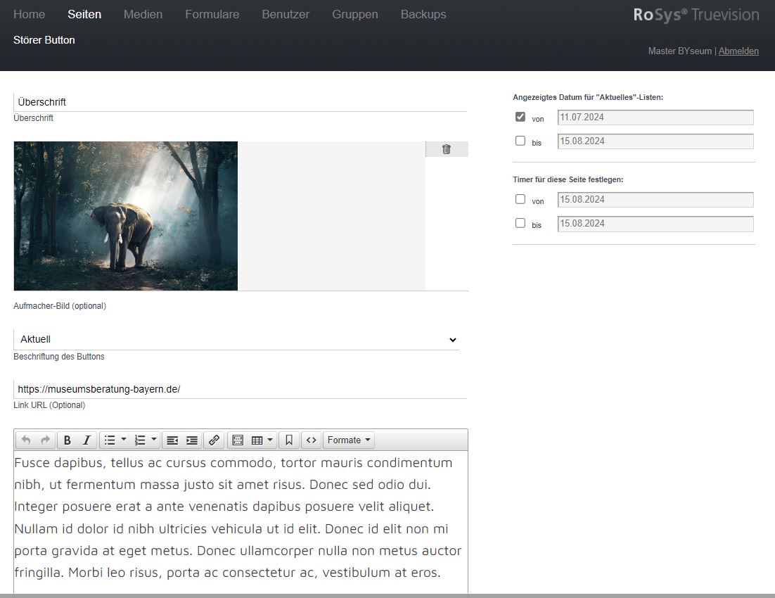 Ab heute ist der neue "Störer"-Button für alle BYSEUM-Anwendungen verfügbar. Hier können Sie wichtige oder aktuelle Informationen zentral auf Ihrer Website platzieren. Verknüpft ist der Button mit einer Unterseite, auf der Sie einen Kurztext formulieren können.